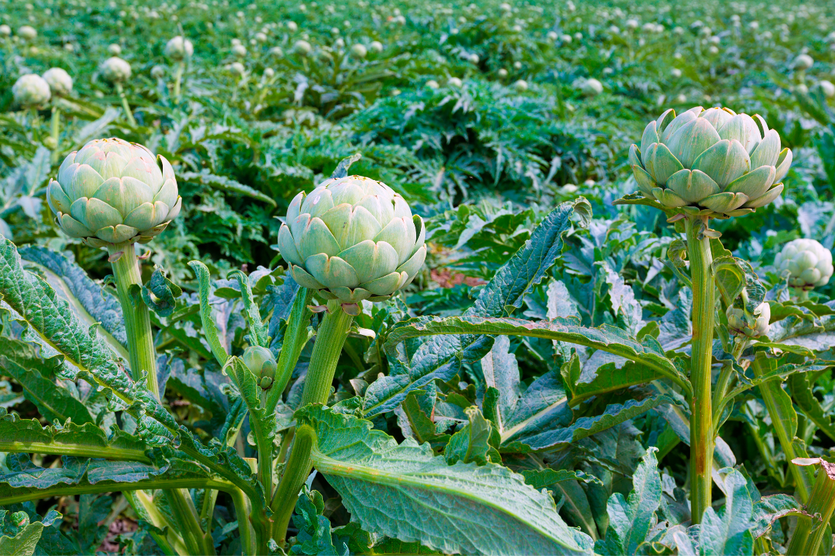 The artichoke is a herbaceous plant of the Asteraceae family, prized for its edible flowers with a rich, slightly bitter flavour. The edible part of the artichoke consists of the fleshy scales, called bracts, surrounding the central heart, known for its softness and delicacy. Native to the Mediterranean regions, the artichoke is a versatile food in the kitchen. Usually cooked boiled or steamed, it can be served as an appetiser, added to salads, or used as a main ingredient in a variety of recipes. Its characteristic combination of tender texture and unique flavor makes the artichoke a popular choice in many cuisines around the world.
