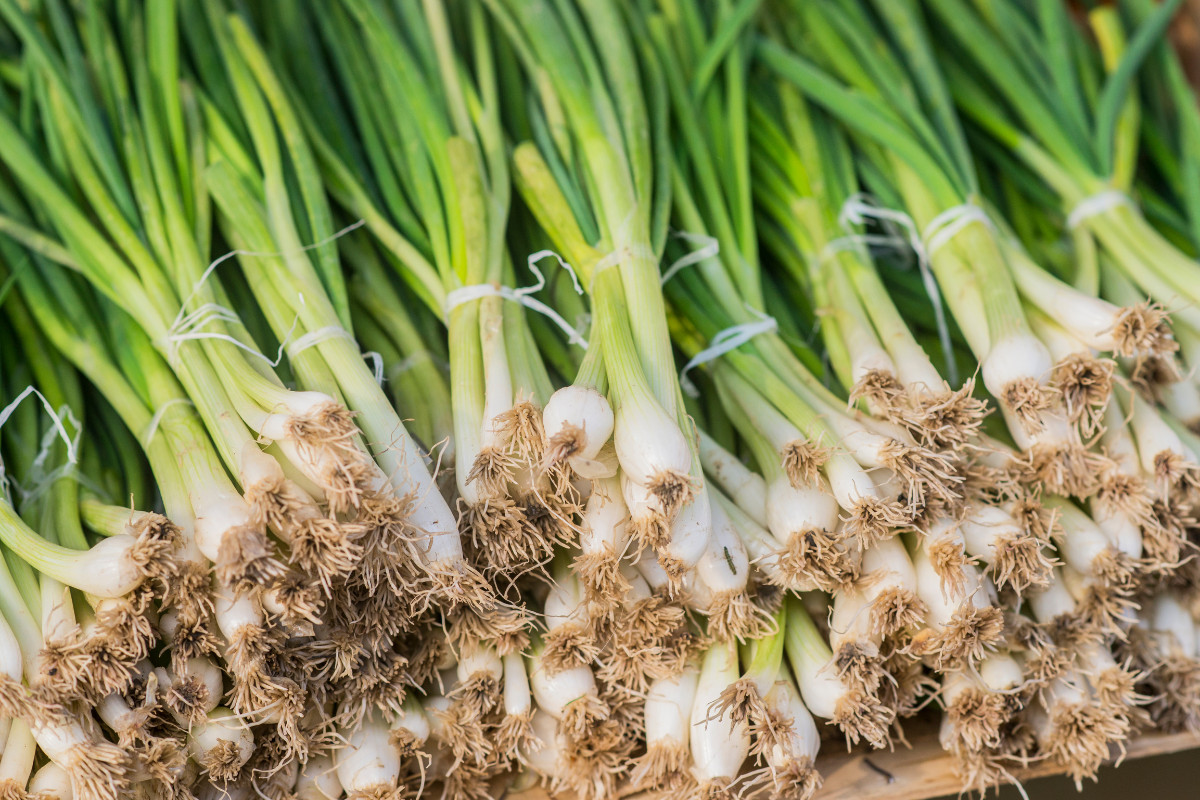 The spring onion also known as 'bunch onion' is a type of onion commonly used in Egyptian and world cuisine. It has long, thin green stalks and small white bulbs, and is often prized for its delicate onion flavour and crispy texture.