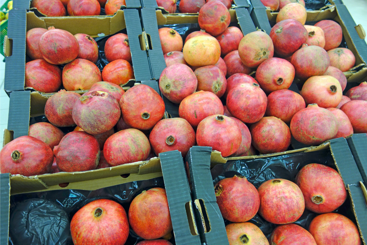 It is an almost spherical fruit of medium to large size. Its surface is covered with a tough, deep pink skin, while the interior consists of a white, spongy, bitter part divided into compartments filled with sacs containing small, dark pink, sweetly acidic and juicy seeds. These seeds are completely edible, offering a crunchy texture and a sweet berry-like flavour.